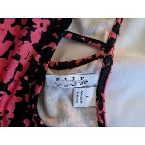 Elle Top Women's L Coral Pink Black Scoop Neck Keyhole Peplum Stretch Blouse