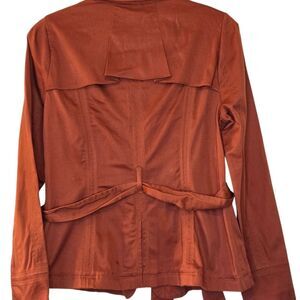 Elle Utility Blazer in Red Rust Color Cotton Blend Zip Closure w/Belt Size Small