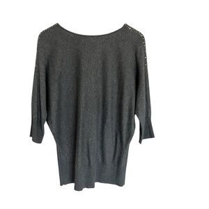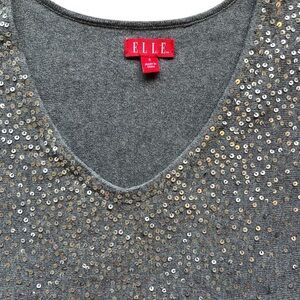 Gray v-neck sequin sweater with 3/4 dolman sleeves. 60% cotton and 40% rayon.