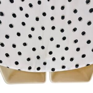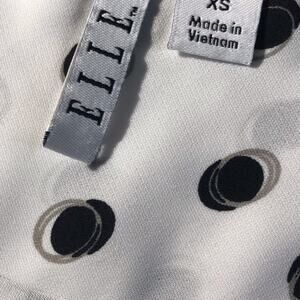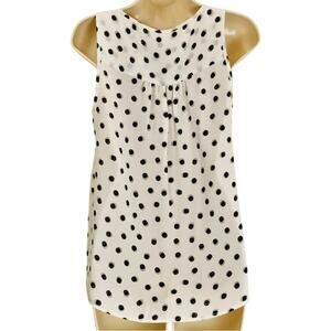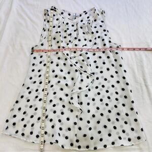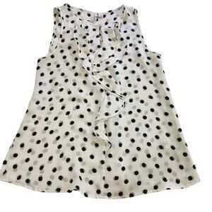 Elle White and Black Polka Dot Sleeveless Top Ruffle Front Keyhole Button Closure on rounded neckline