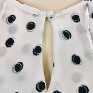 Elle White Black Polka Dot Sleeveless Top Ruffle Front Keyhole Button Closure