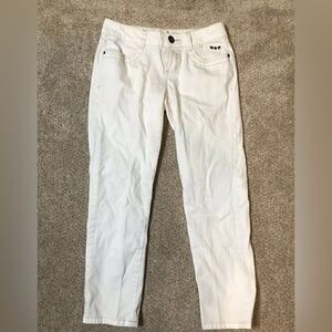 Elle White Boyfriend Ankle Skinny Jean Pants Cropped Distressed - Size 4