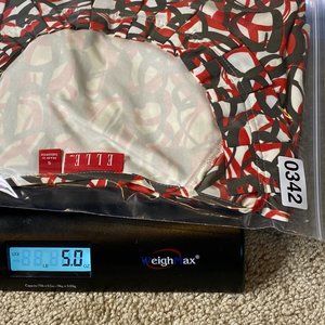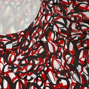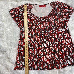 Elle Women's Abstract Print Pleated Neckline Short Sleeve Top Red Black Size S