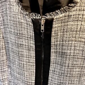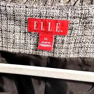 Elle Women's Black Grey White Zip Up Pockets Long Sleeve Tweed Jackets Size XL