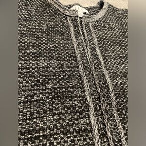 Elle Women's Black White Gray Knit Open Front Sweater Cardigan Size Medium