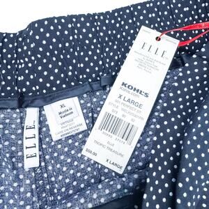 Description: Step out in playful style with these Elle polka dot pants. Featuring a classic black and white polka dot pattern, these women's size XL pants are made from lightweight 100% rayon for breathable comfort. Designed with a wide-leg silhouette, a flattering high rise, and a self-tie waist belt for added charm. Perfect for casual outings or dressing up with heels and a blouse. New with tags. Made in Vietnam.