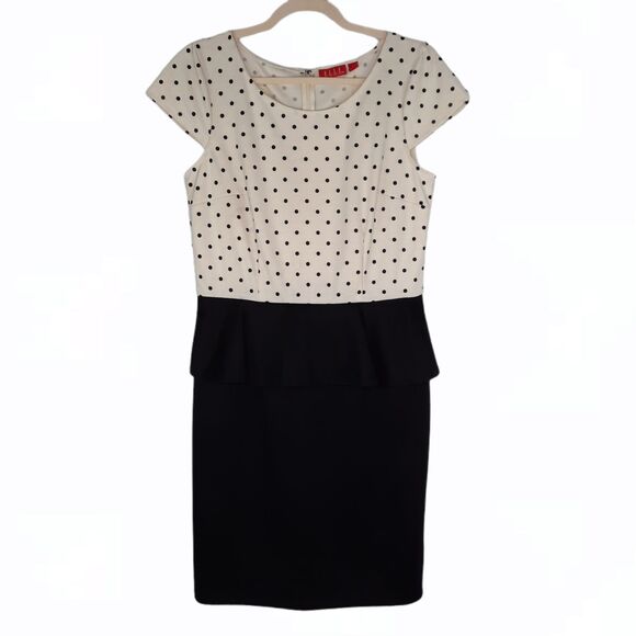 Elle NWT Women's size M Black and White Polka Dot Peplum Dress Cap Sleeves MSRP $60