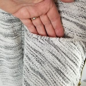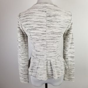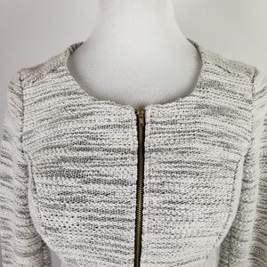 Elegant cream cardigan with a textured design. Features a front zipper closure. Perfect for layering.