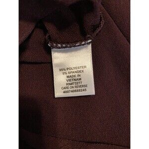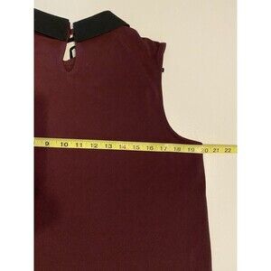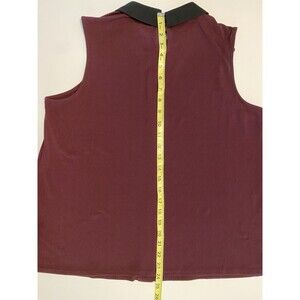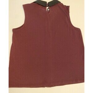 This Elle Women's Dark Plum Sleeveless Blouse in size Medium is a stylish and versatile piece perfect for dressy or casual occasions. Made from a comfortable polyester blend material, this blouse features a cute bow accent on the collar. The dark plum color adds a touch of elegance and would pair very well with jeans for a casual look or dress pants or a pencil skirt for business or more formal occasions. Machine washable for easy care. Thanks for looking!