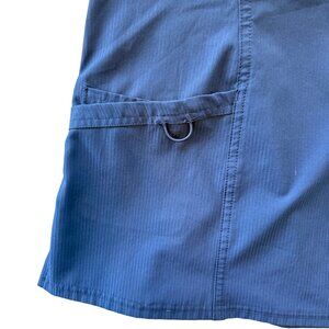 Elle Womens Navy Blue Medical Scrub Top Medium Side Zip Stretch Pockets Lightwei