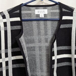 Elle Women's Open Cardigan Sweater XL Black & White Stripes Long Sleeves