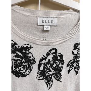 Elle Women's Pullover Crew Neck Beaded Front Stretchy Sweater