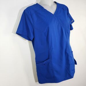 Elle Womens Scrub Top XS Mock Wrap EL620 Royal Blue Patch Pockets Tonal Texture