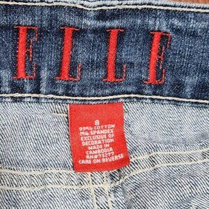 pre-owned Elle Womens Stretch Blue Denim Mini Skirt Distressed Gold Sequin Detail, it has a small stain at the bottom as you can see at picture. 5 pockets