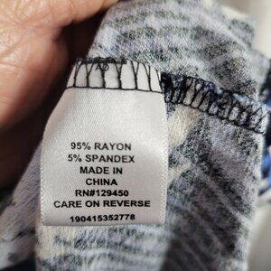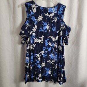 Elle XL Cold Shoulder Short Sleeve Blouse Blue White floral striped Rayon EUC