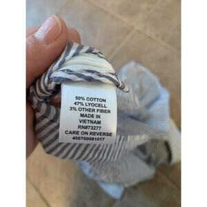 Elle XL Sheer Blue White Stripe Collar Pullover Tank Top Gold Thread Zip Side