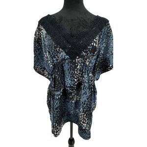 In a mesmerizing blend of style and comfort, this Elle babydoll top enchants with its empire waist, delicate lace trim, and slinky stretch fabric. The blue and black abstract pattern evokes a sense of artistry, while the soft polyester ensures a graceful drape, making it an elegant addition to your wardrobe.