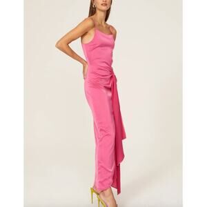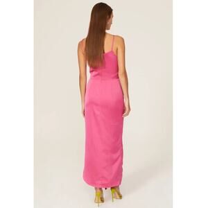 Elle Zeitoune Dress Womens X Small Pink Patrice Draped Satin Midi Slit Front