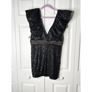 Elle Zeitoune Marla Black Sequin V-Neck Mini Dress Women's Size Large L