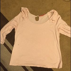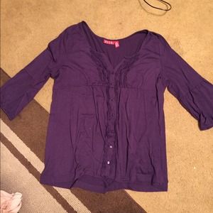 2 cute Elle brand shirts, both size XL. One is pink with ruffle accents on shoulders and other is purple with a button down front, empire waist and ruffles.