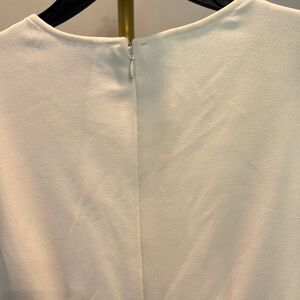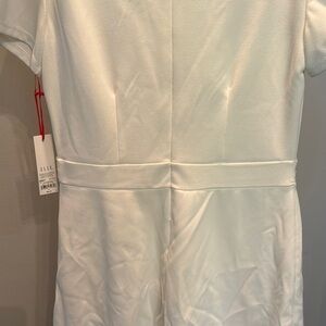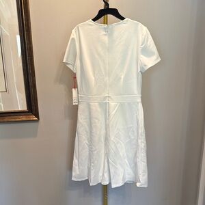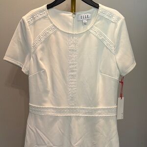 Chic white dress with short sleeves and lace detailing. Perfect for any occasion.