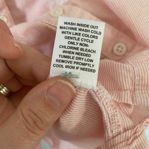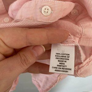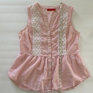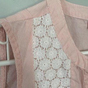 Elle pink and white pin striped tank with embroidered lace front panel details. Button front closer, peplum waist, and lightweight material. Size Large