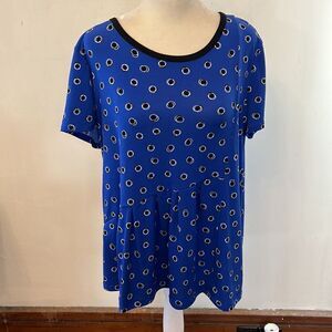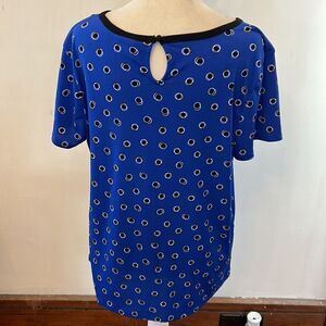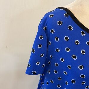 Elle royal blue black white circles short sleeve asymmetrical top Size M EUC