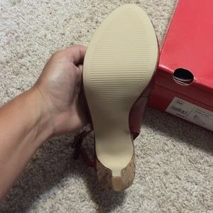 Brand new, never worn, open toe , red sandal, 3 inch heel