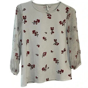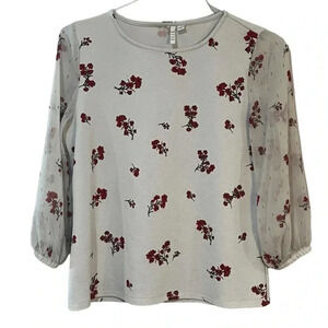 Elle size M cherry blossom pull over top with sheer sleeves EUC