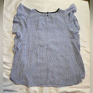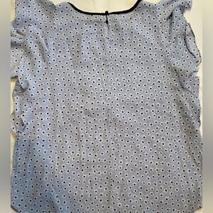 -Features: Elle size small blue/white daisy blouse. No stains or holes. There is no stretch to the material.