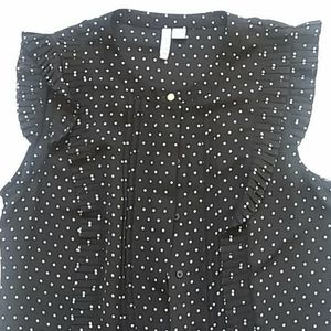Polka dot button up ruffle top