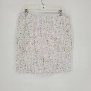 Elle womens 14 white pastel pink blue speckled popcorn knit tweed pencil mini skirt ray edge hemline with pockets Lined zip back Good Preowned Condition May show normal wash wear color may appear differently depending on light spring easter