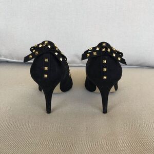 Elegant black heels with gold studs. Perfect for a stylish look.