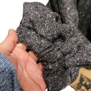 It has sleeves that have elastic hidden in a casing at the cuff (your wrists)