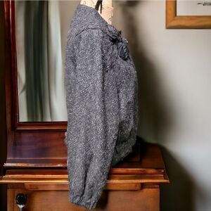 Elle Designer Tweed Jacket / Fabric Roses Pop-up on the right shoulder with applique leafs + two contrasting black roses / Fully lined