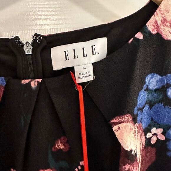 Elle Fit and Flare Black Floral Dress size medium NWT