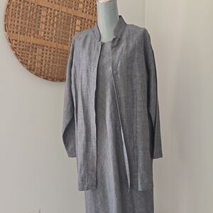 Elleen Fisher | Linen Gray Dress and Jacket Set