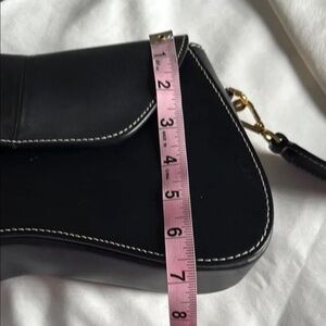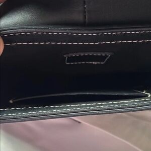 black leather crossbody/ shoulder bag with white contrast stitching. bag has a scratch on the back and a few minuscule scratches on the front. bag is still in good shape and has many wears left in tit's future :) the inside is suede and clean with an interior pocket. Elleme is a French brand and their bags are timeless and classic. this is a bag that can be worn any season with any outfit. comes with the sleeper bag.