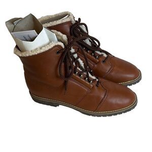 New Has original box without top so will be shipping without original box. Leather lace-up boots lined are warm and comfy.