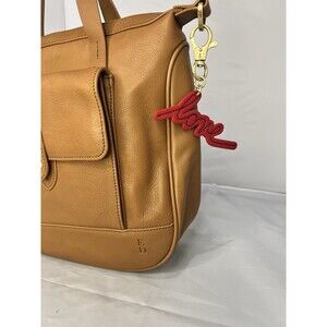 This Ellen Degeneres ED Leather Love Tote Bag in Tan is the perfect accessory for any happy woman. The bag features a cute coin accent and a spacious interior with a pouch for added storage. The exterior is made of high-quality leather and the bag comes with a strap for easy carrying.