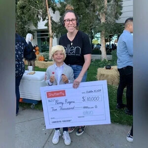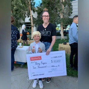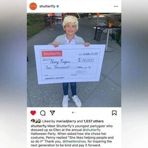 This listing includes the wig used for Ellen Degeneres and The black T shirt used for her producer. The wig is a women’s wig but also fit a kids head.