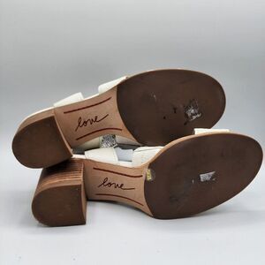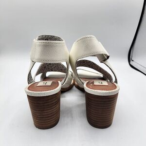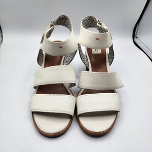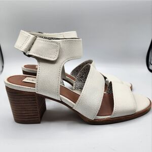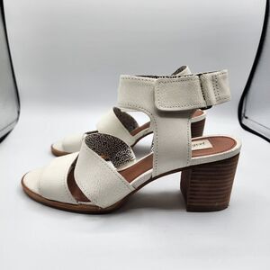 Ellen Degeneres white leather open toe strappy 2.5" block heel velcro side buckle in very good condition