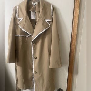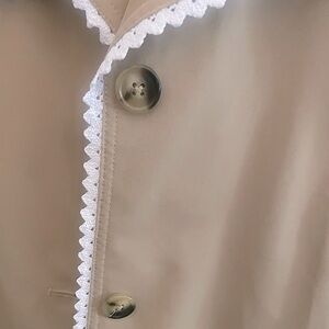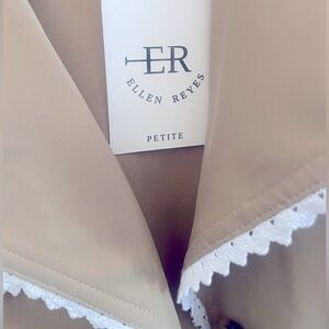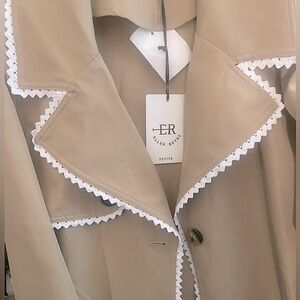 Ellen Reyes Beige w/ White Lace Trim Detail Small/Petite Belted Trench Coat NWT
