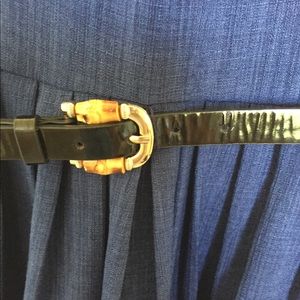 Navy blue dress with black belt. Very cute. Work appropriate too!