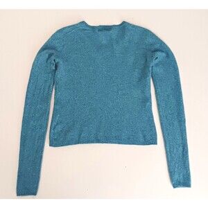 Ellen Tracy 100% Cashmere Blue V Neck Pullover Sweater Sz M
