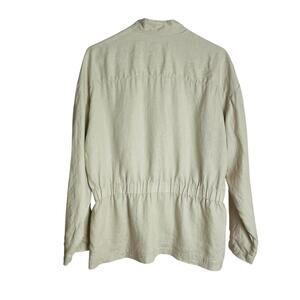 Ellen Tracy 100% Linen Anorak Jacket Womens L Beige Full Zip Roll Tab Sleeve