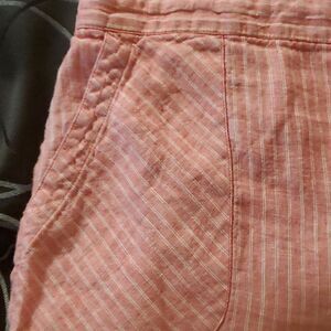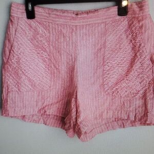 Ellen Tracy 100% Linen Pink White Stripes Elastic Waist Pull On Shorts