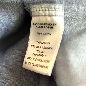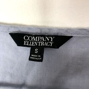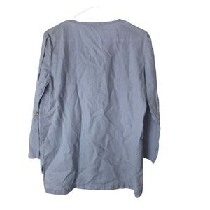 Ellen Tracy 100% Linen Tunic Top Blue Size Small Hi Low Roll Tab Sleeve Pockets