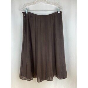 Ellen Tracy 100% Silk Size 10 Brown Flowy Embroidered Print Skirt Church STAINS