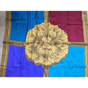Ellen Tracy 100% Silk Square Scarf With Floral Pattern and Gold Lines-34"x34"